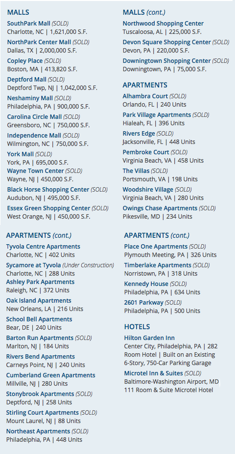 Prior to that, Samuel Switzenbaum completed a successful tenure, as Vice Chairman and one of the principal owners, at the merged companies of Strouse Greenberg & Co./Rubin Organization, now known as the Pennsylvania Real Estate Investment Trust, or PREIT (NYSE: PEI). Prior to the merger, Mr. Switzenbaum headed one of the largest private real estate companies in the nation, managing an all-asset class portfolio exceeding $1 billion as President and CEO of Strouse Greenberg.